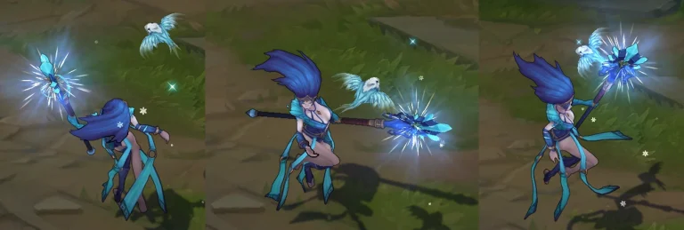 Riot went all out in crafting this masterpiece. The skin flaunts a brand-new model for Janna, her trusty staff, and even her air elemental, Zephyr. But what really sets this skin apart are the stunning blue particles that dance with each of her abilities and auto-attacks. And let’s not forget the mesmerizing snowflakes that gracefully fall around Janna, adding a dash of magic to her every move.