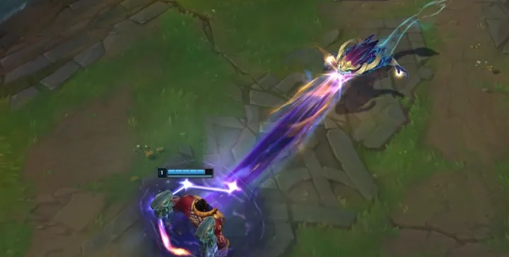 - E – Singularity: This ability summons a black hole, damaging and gradually pulling in enemies. It grants Stardust for each enemy death within the black hole and for each second an enemy champion remains caught inside. The black hole’s center executes enemies below a certain health threshold. Stardust augments Singularity’s area and execution threshold.