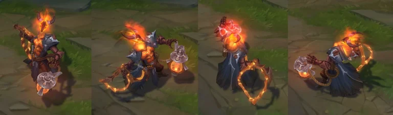 Auto-attacks, while simpler in comparison, still carry the fiery theme. Flay’s sparks, however, truly catch the eye. They’re a testament to the attention Riot Games poured into this skin. The floating skull wreathed in flames is a visual treat, making it arguably the best Thresh skin.