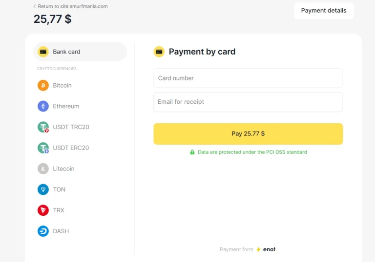 - You will be redirected to the payment page to complete the payment. Here you only need to enter your bank card number and e-mail (use the same one that was specified on our website).