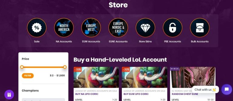 2. How to Choose LoL Account? Let’s get down to business, we adapted the system of selecting accounts in such a way that it is most convenient for you, for this we made a separate page – https://smurfmania.com/store/buy-lol-account/ – at the top of the page we added categories, so that you can choose the type of accounts suitable for you on the server (NA, EUW and so on), PBE, or pay attention to the Sale category, all products that are currently being discounted are automatically collected there. You can also pay attention to the categories of Rare Skins and Bulk Accounts and much more.