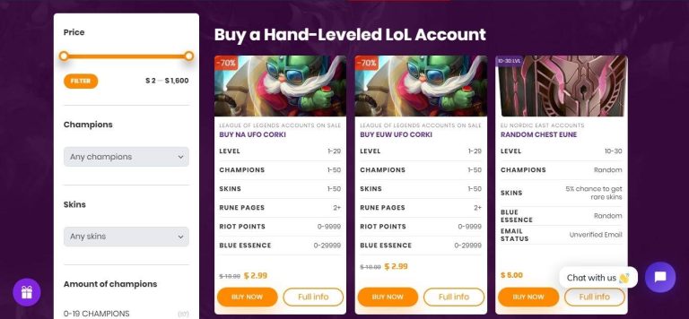 1. The first thing you need to determine for yourself is for what purposes do I buy an account in League of Legends? Do you want an account with rare skins? Do you want to start climbing the ranking system from scratch and you need an account on which not a single ranked game has been played yet? Just do not want to re-upgrade your account to level 30, and your previous account was banned? Or maybe you just want to play for fun and write in the chat what you want to write to allies and opponents, without choosing words and not being afraid to get a ban for insults in the chat on your main account? One way or another, there may be many reasons, and it so happened that we have an account for each of these goals and even more!