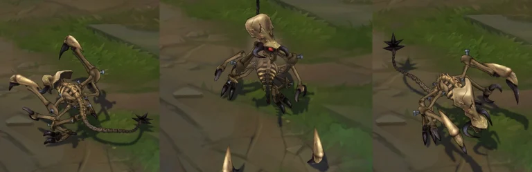 The developers went above and beyond, not limiting themselves to a mere model change. While the model is of high quality, the real highlights are the added particles and animations. Cho’Gath now rains bone spikes down on his enemies, fitting for a skeleton. The death animation is particularly noteworthy; it sees Cho’Gath crumbling into a pile of bones, a gruesome sight to behold.