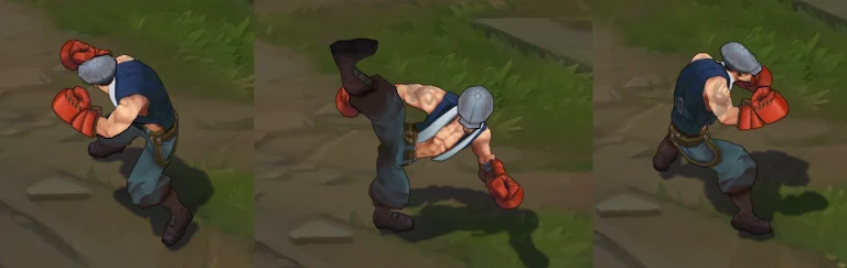 Picture this: a fighter’s attire combined with a worker’s grit, all wrapped up in a powerful champion. Knockout Lee Sin sports an open shirt – a nod to historical boxers’ attire – radiating the charm of that era. The heart of this skin lies in its boxing-themed animations, seamlessly capturing the essence of a fighter. From idle stances to devastating attacks, Lee Sin moves and strikes like a seasoned boxer, packing a punch in every move. Admittedly, there’s a bit of inconsistency, with some animations resembling kickboxer moves, but overall, the skin’s boxer style is evident.