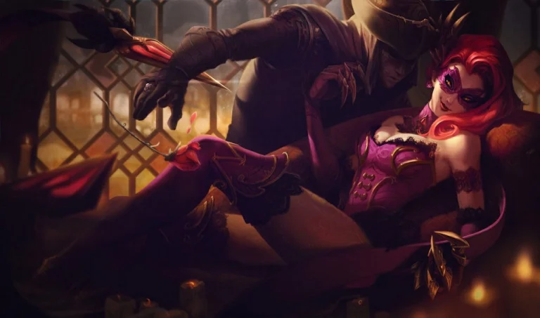 Evelynn’s skins are known for their compelling concepts, and Masquerade Evelynn is no exception. Picture her dressed in a revealing masquerade outfit, ready to attend a glamorous ball incognito. It’s like she’s stepping right out of a mysterious fantasy world and into the Summoner’s Rift. The inspiration for this skin is apparent, drawing from the allure of masquerade balls and the seductive charm that Evelynn embodies. It’s a concept that resonates with both her character and the player’s desire for a visually captivating experience.