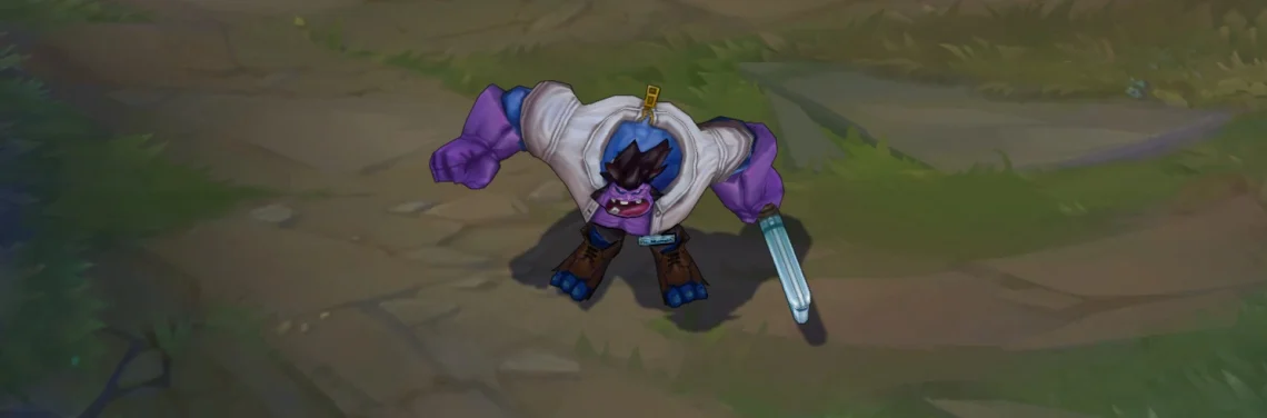 Now, let’s talk about the nitty-gritty of Mundo Mundo’s design. While this skin doesn’t undergo a complete transformation, Riot did make some moderate model changes. The most noticeable alteration is to Mundo’s cleaver, which looks like it’s made of inflatable material. It’s a hilarious touch that adds to the skin’s charm. The oversized purple gloves, goofy mask, and a shirt with a comically large zipper pull on the back complete the look.