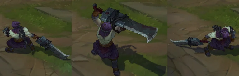 When it comes to design, Nightmare Tryndamere doesn’t hold back. Imagine a battle-worn warrior, draped in tattered rags and patches of protection. His left arm adorned with chains and spikes, showcasing a practical yet fearsome fashion sense. But the real showstopper is his sword, a weapon that oozes brutality with its battered edges, bearing the scars of countless battles. The chains enveloping the blade only add to its foreboding presence. The splash art? Simply breathtaking. A cacophony of cries from the damned fills the air, and the detailed depiction of Tryndamere – from his ragged attire to his otherworldly complexion – captures the essence of the skin’s nightmare theme. Unfortunatly, this skin has no new animations, particles or sounds.