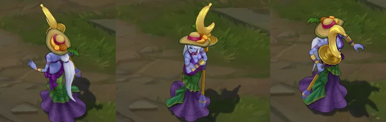 The skin features Soraka in casual beach attire, wielding the Order of the Banana staff. It also pays homage to the Chiquita Banana lady, Carmen Miranda, embracing a relaxed and playful style.