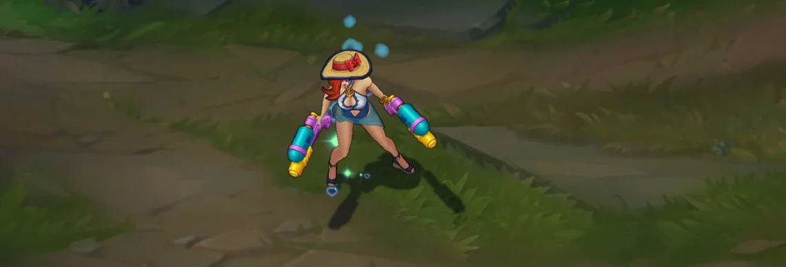Imagine Miss Fortune kicking back at a beach party, armed not only with her iconic guns but also with a playful water pistol. That’s the heart of the Pool Party Miss Fortune concept. Riot didn’t just stop at giving her a swimsuit – they drenched her in the spirit of summer fun. Her outfit isn’t just fashionable; it’s lethal in the most stylish way. With beachy clothing that’s ready to conquer, this skin is the perfect blend of fashion and firepower.