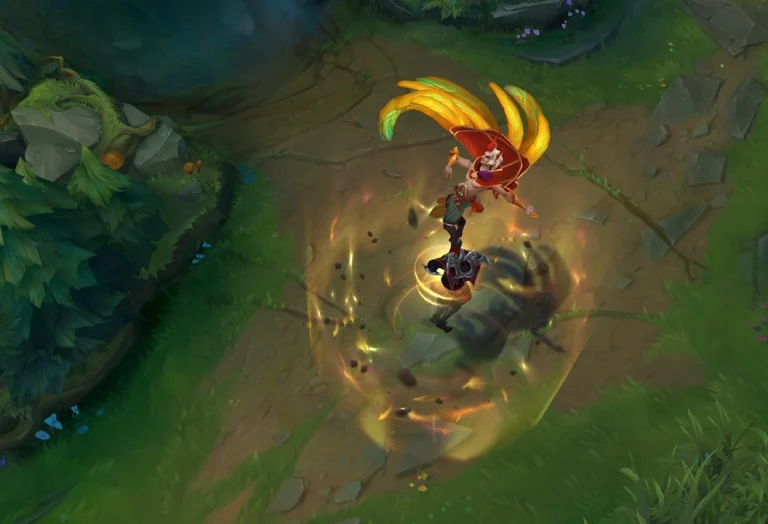 - E – Battle Dance: Rakan can fly to an allied champion and grant them a shield, and this can be recast for free for a short duration.