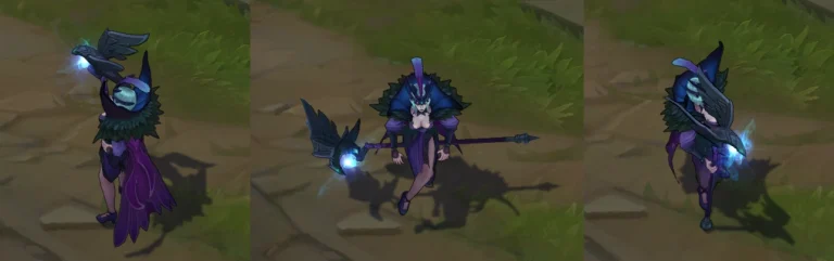 Ravenborn LeBlanc embodies the essence of a raven-themed witch, drawing inspiration from the infamous Maleficent. Sporting a new texture and costume, LeBlanc’s appearance is a mesmerizing blend of purple and blue hues. Her staff has been reimagined to feature a striking raven at its end, adding to her mysterious charm.