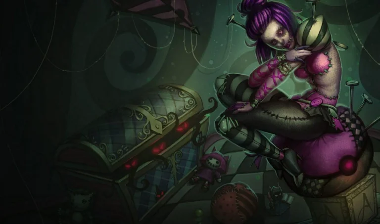 While the skin doesn’t introduce new particles, animations, or sounds, the overall visual package is a treat for the eyes. The splash art, depicting Orianna amidst eerie dolls and a purple caster minion, perfectly captures the skin’s theme. However, it’s worth noting that there’s a slight difference in colors between the splash art and the in-game model – a minor detail that doesn’t take away from the skin’s charm.