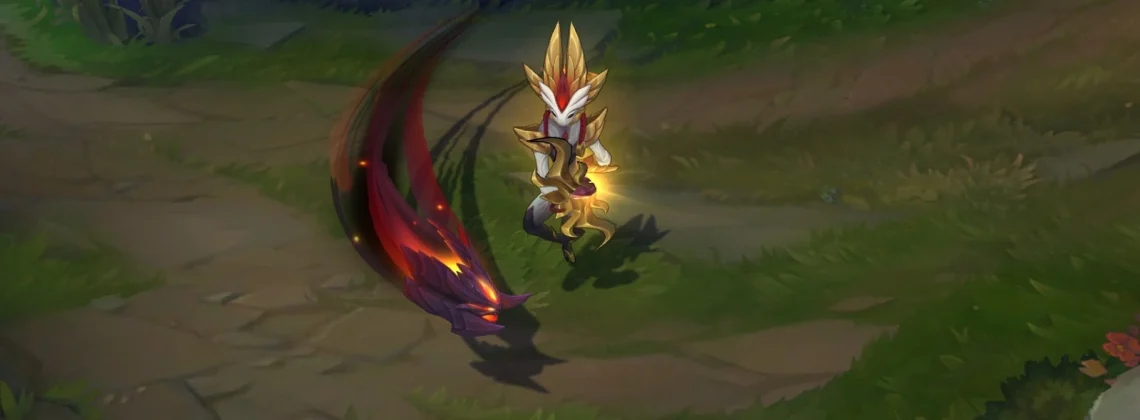 The skin introduces a fiery twist to Kindred’s appearance, depicting Lamb and Wolf as living flames and shadows. The skin embodies both destruction and rebirth in response to an infernal threat.