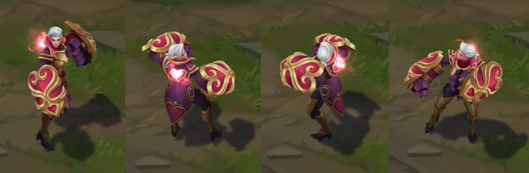 In conclusion, Heartbreaker Vi is a skin with a cartoony approach to the heart theme it so obviously communicates. The shield-vambraces are also interesting but the fists are still large. Turning the heart-shields into a tiny shield and sword, with a heart design if necessary, would’ve allowed for a more appealing knight of hearts theme. Still, it’s a nice skin.