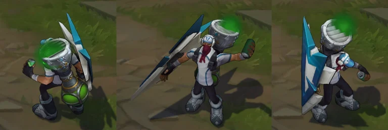The concept behind the SSW Singed skin is all about combining modern style with a touch of championship glory. Imagine Singed trading his usual scientist attire for casual, contemporary clothing, a trophy proudly displayed on his back, and a shield that’s a nod to the SSW logo. It’s like Singed took a break from his laboratory to hit the streets in style. Riot Games brilliantly brought this vision to life, capturing the essence of Singed as a true champion.